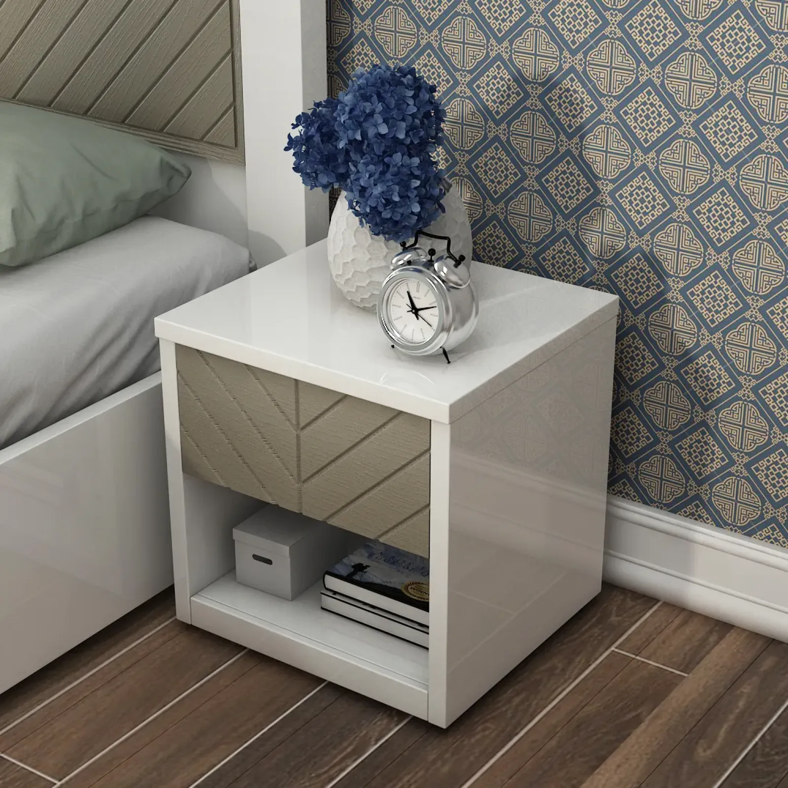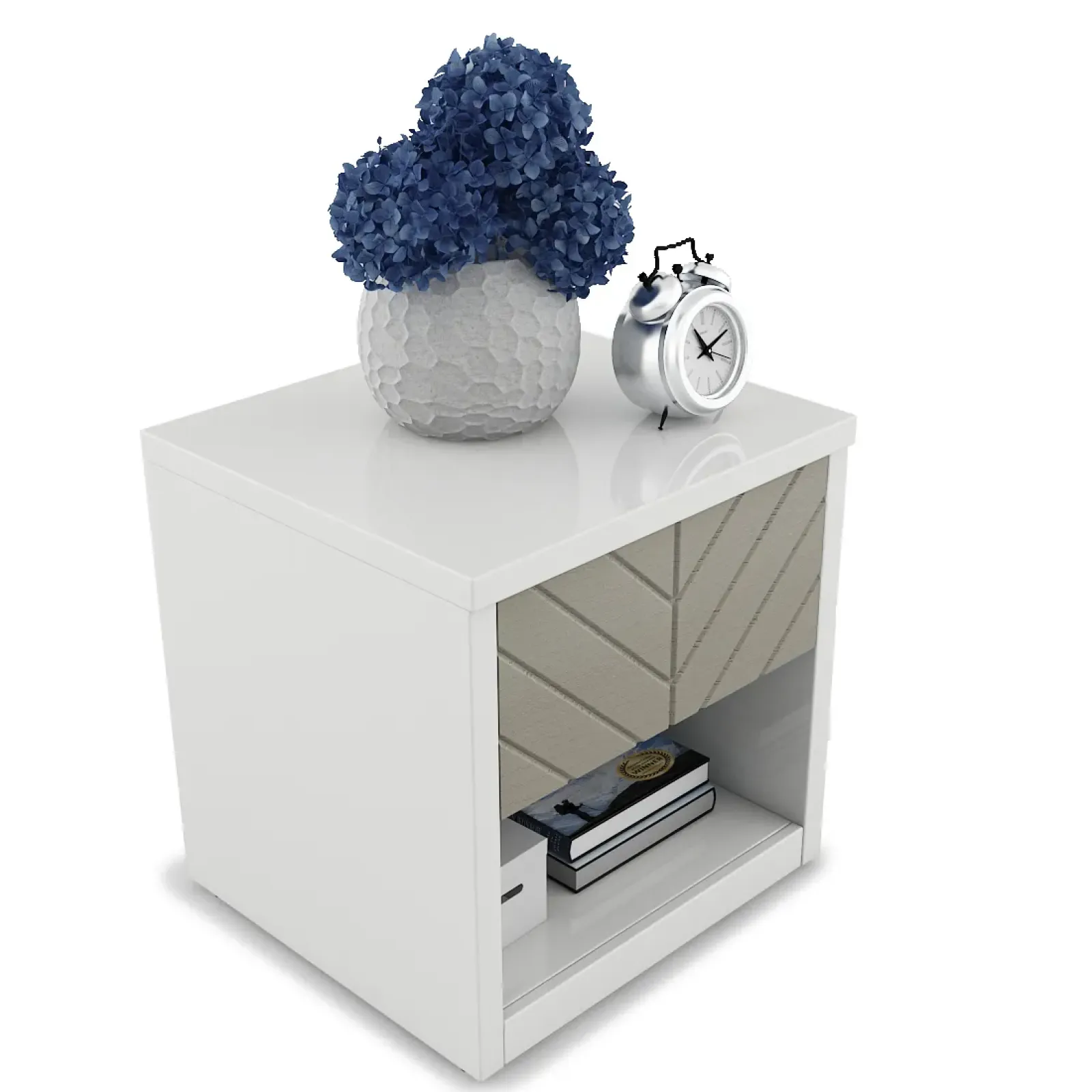 Alaska Bedside Table V2- High Gloss White