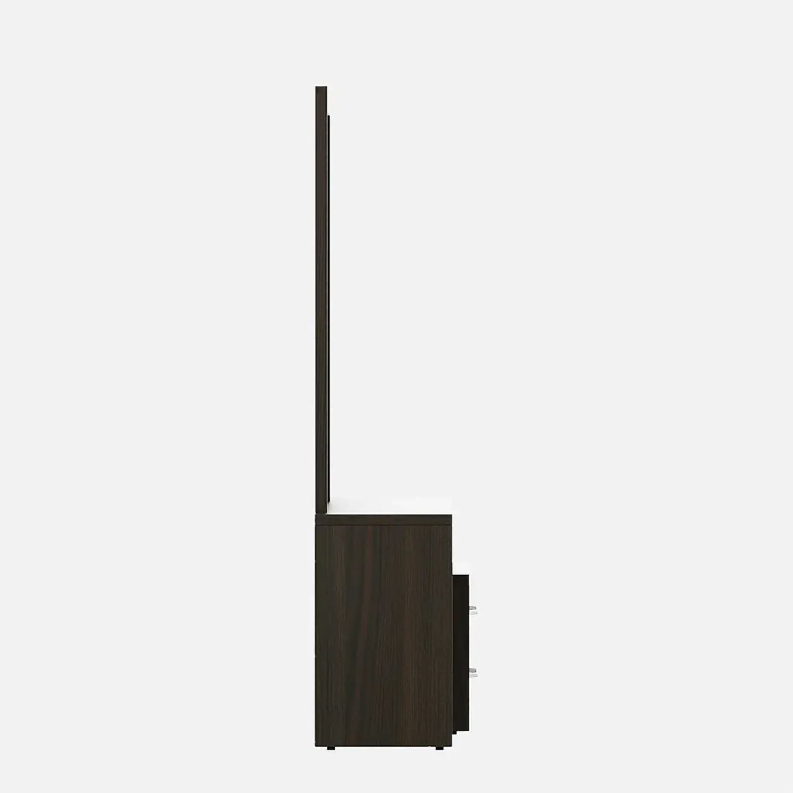 - Alina Dresser- Fumed Oak Woodpore is a seamless combination of utility and aesthetics, designed to elevate your personal grooming space. Featuring a sleek mirror, spacious drawers, and an ergonomic layout, it offers ample storage for cosmetics, accessories, and essentials.